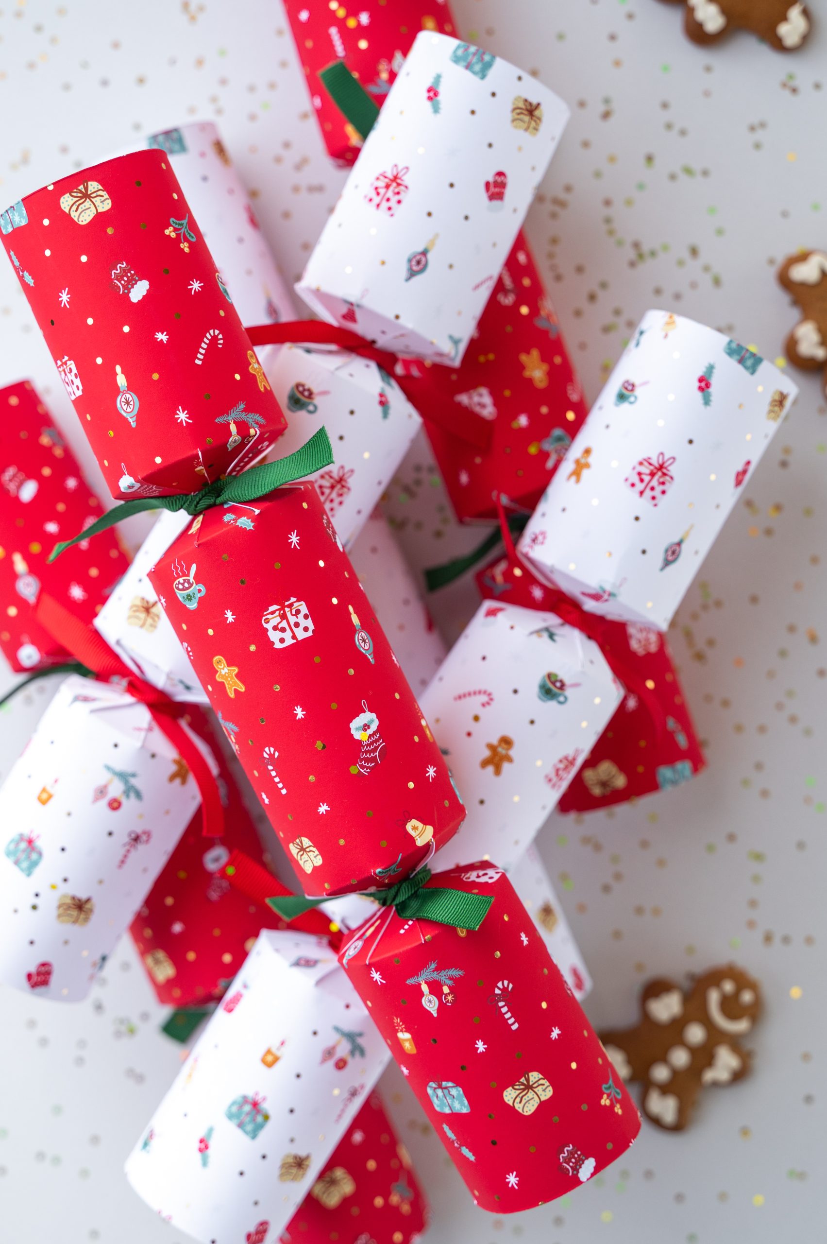 Introducing our box of 6 Celebration Christmas Crackers – the ultimate addition to your holiday festivities! With their festive designs and colours, our celebration crackers make a delightful addition to your holiday table. Each box contains 6 crackers, with a fun gift, joke, hat and snap.