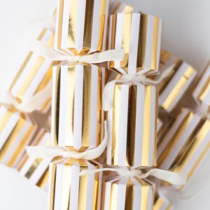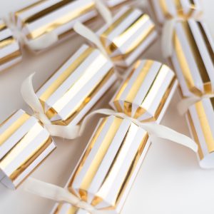Each box of our Handmade Honey Nougat Crackers contains 6 crackers, each containing a honey nougat, a joke, hat and snap.