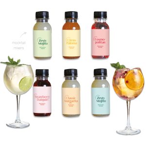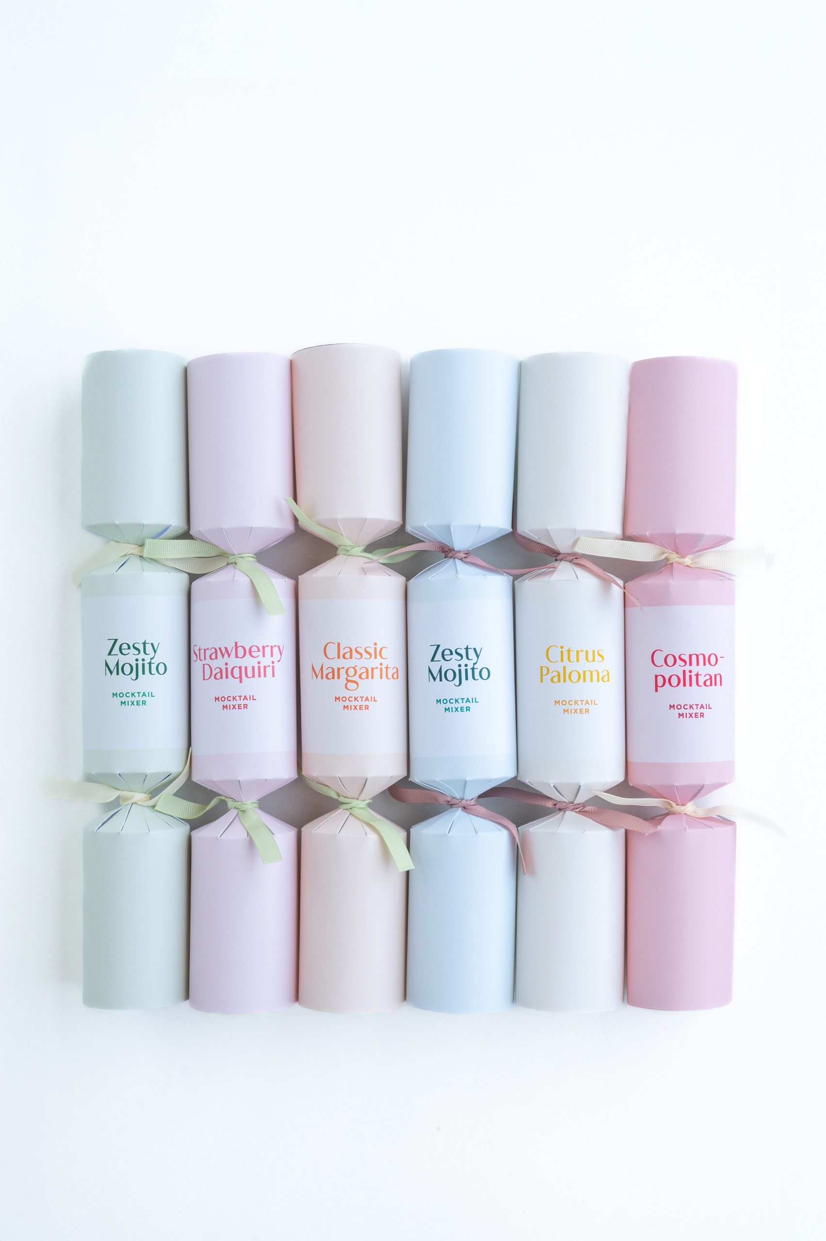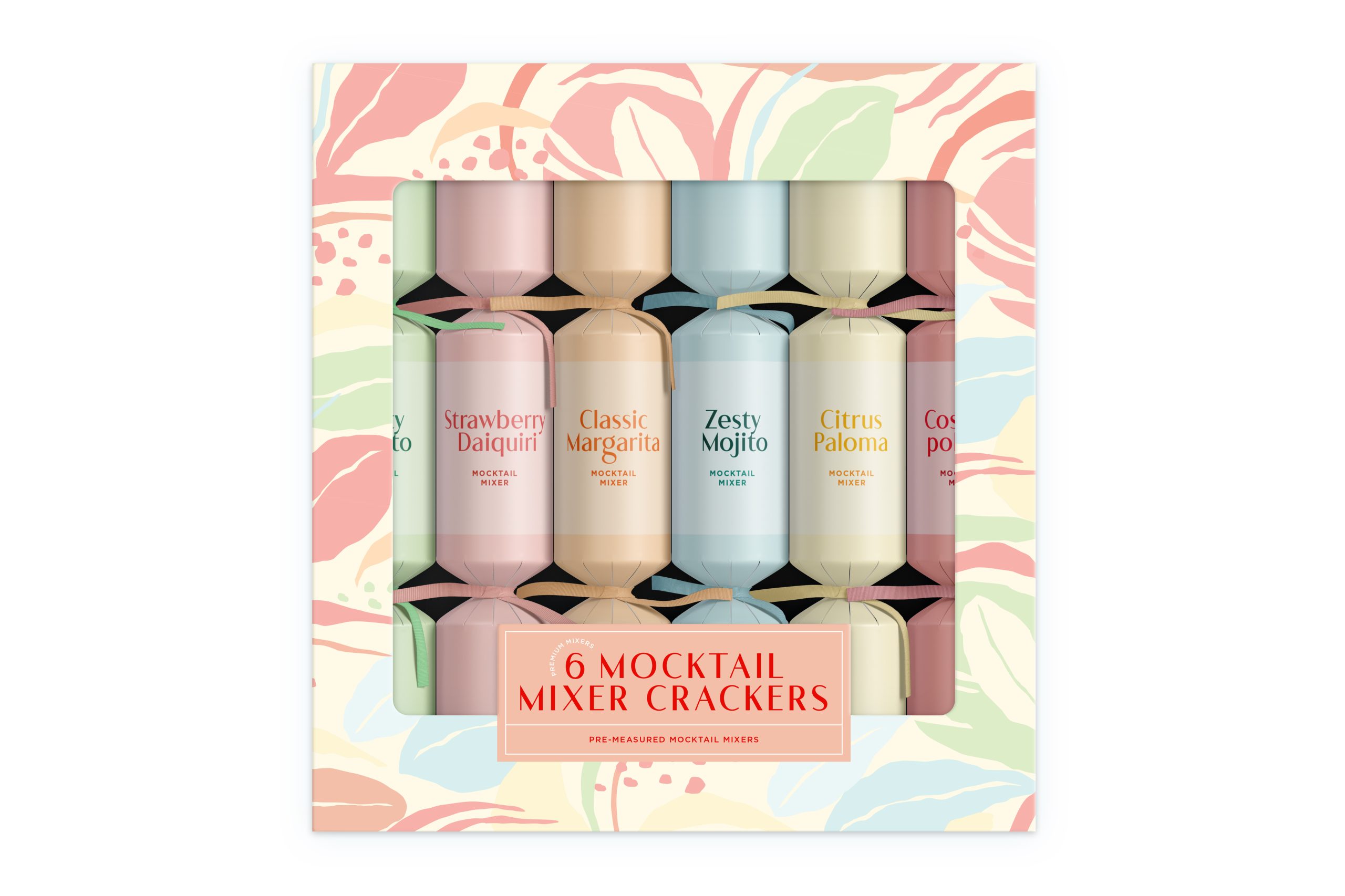 Each box of our Mocktail Mixer Crackers contains 6 crackers each with a premium 100ml mocktail mixer, a joke, hat and snap.