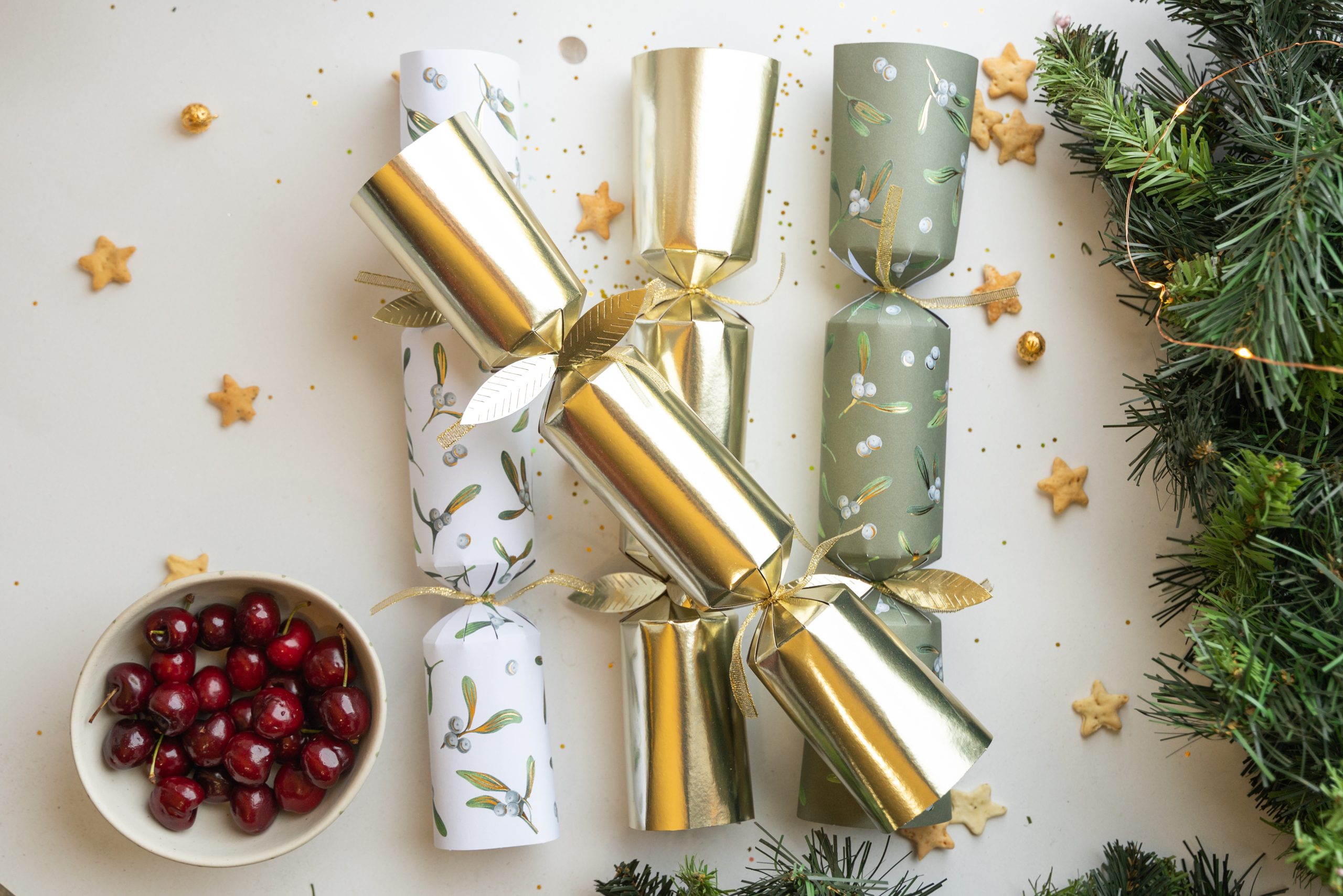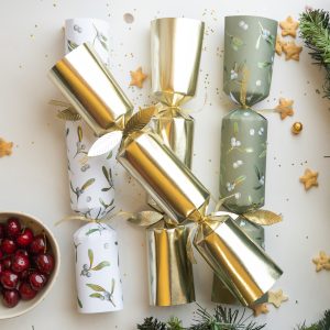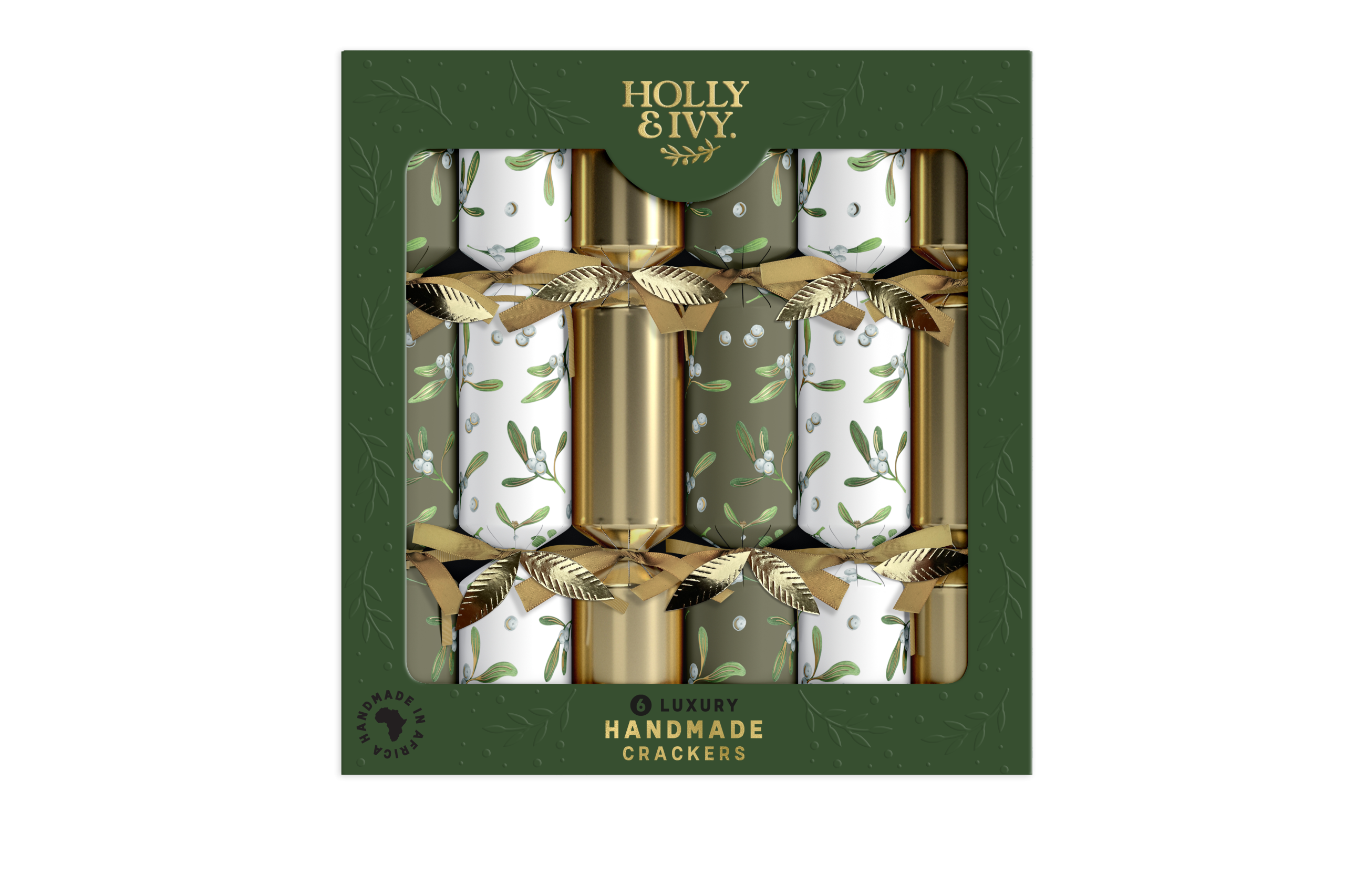 LUXURY – GOLD AND GREEN MISTLETOE (6 CRACKERS)