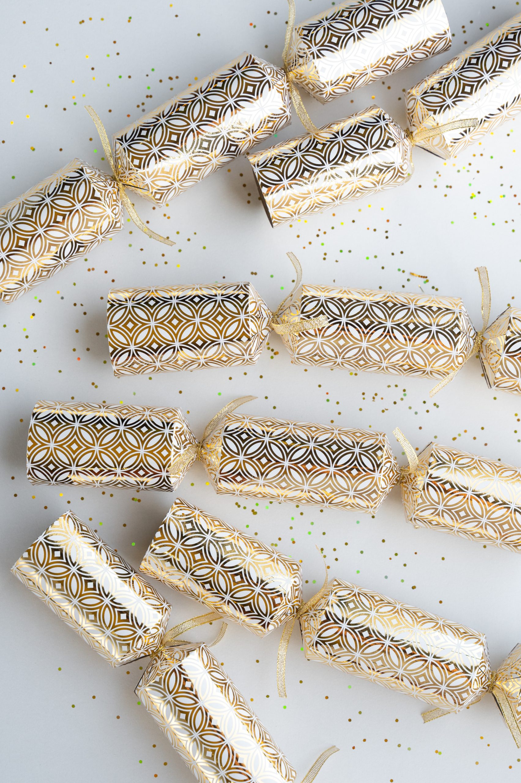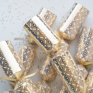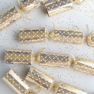 Each box contains 6 x crackers, 6 x additional lengths of ribbon, 6 x jokes, 6 x tissue hats and 6 x snaps. Gifts not included.